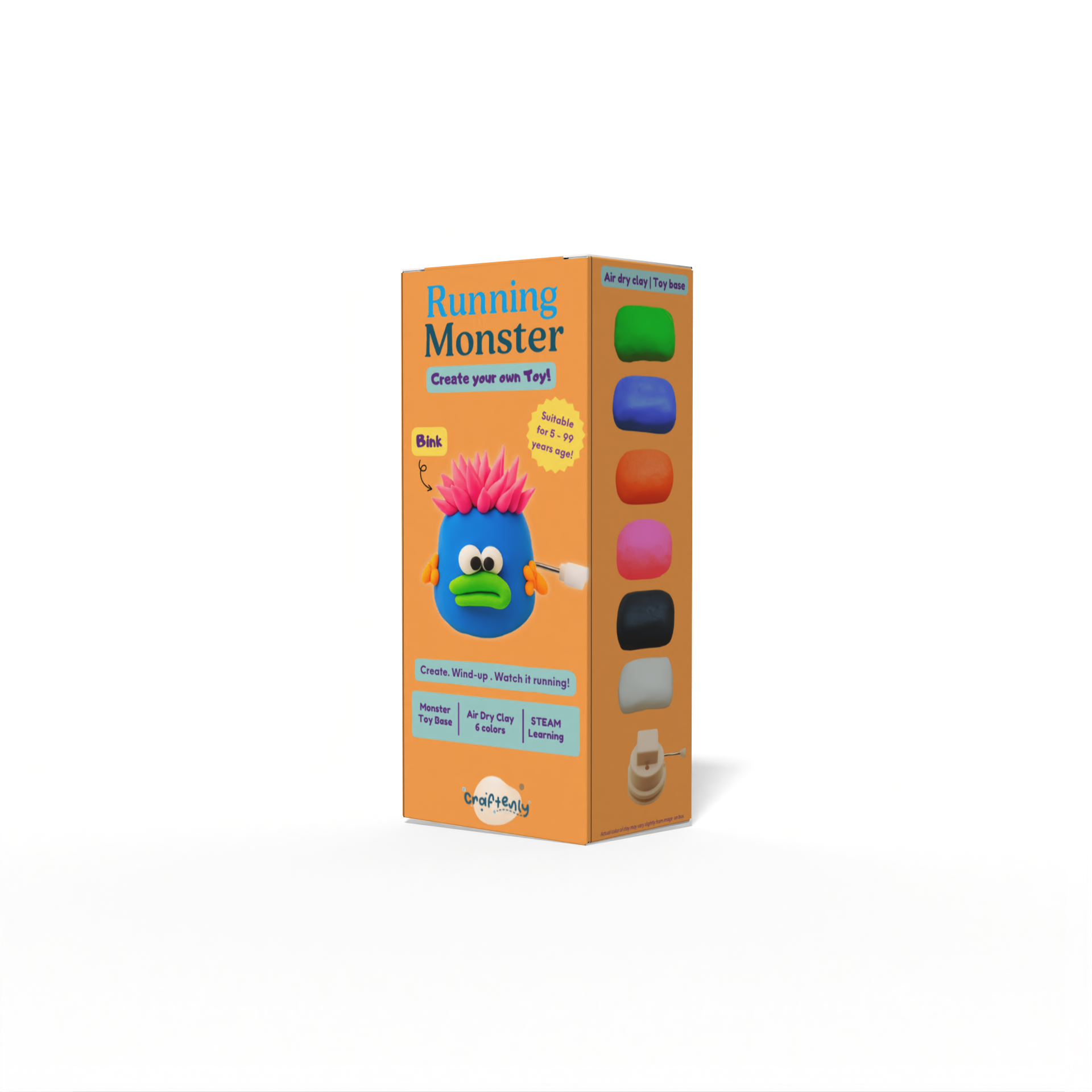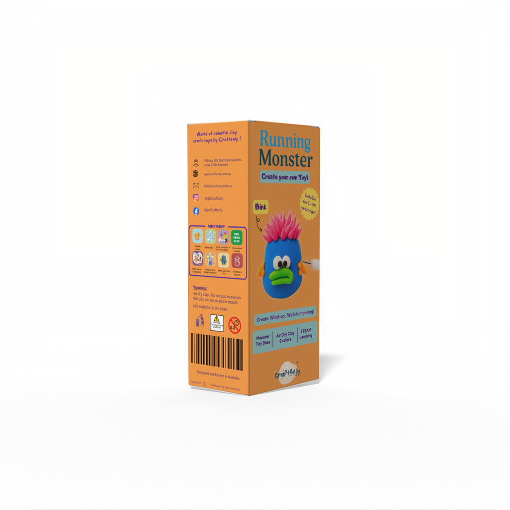 Get ready to sculpt, create, and set your imagination in motion. This isn't just another monster toy; it's a hands-on creative adventure. With this kit, you become the toymaker. Use the vibrant, soft air-dry clay to design a one-of-a-kind wacky monster, a silly alien, or a cute critter. Once your masterpiece is built on the special wind-up base... wind it up and watch it go!